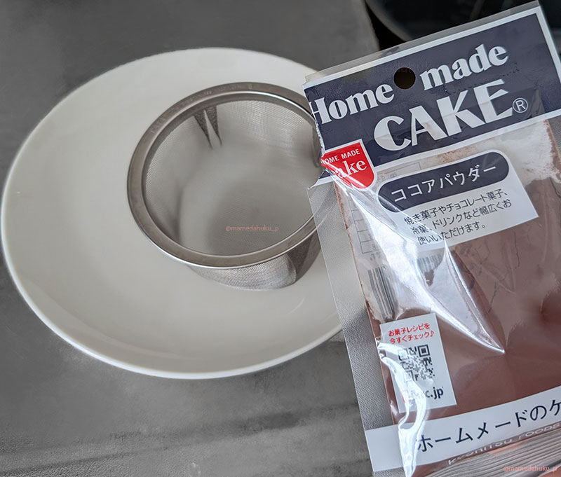 最後に、ココアを茶こしで上からふりかけて……