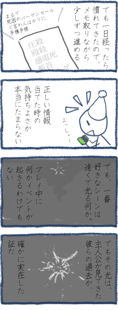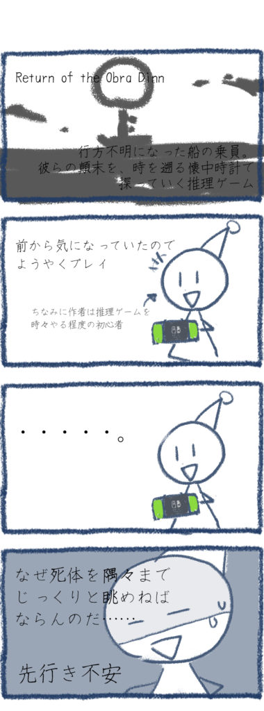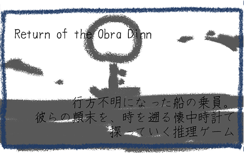 Return of the Obra Dinn(感想) Return of the Obra Dinn 2023.11.112023.03.07 Return of the Obra Dinn を遊んだので感想。オブラディン号を隅から隅まで探索していくの楽しかった! クリアした後、もっともっと遊びたいって気持ちでいっぱいだよ。次作欲しいっす……