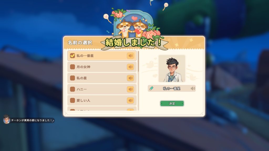 レベル5(10000ゴル)まで拡張すれば、結婚できることを確認した。