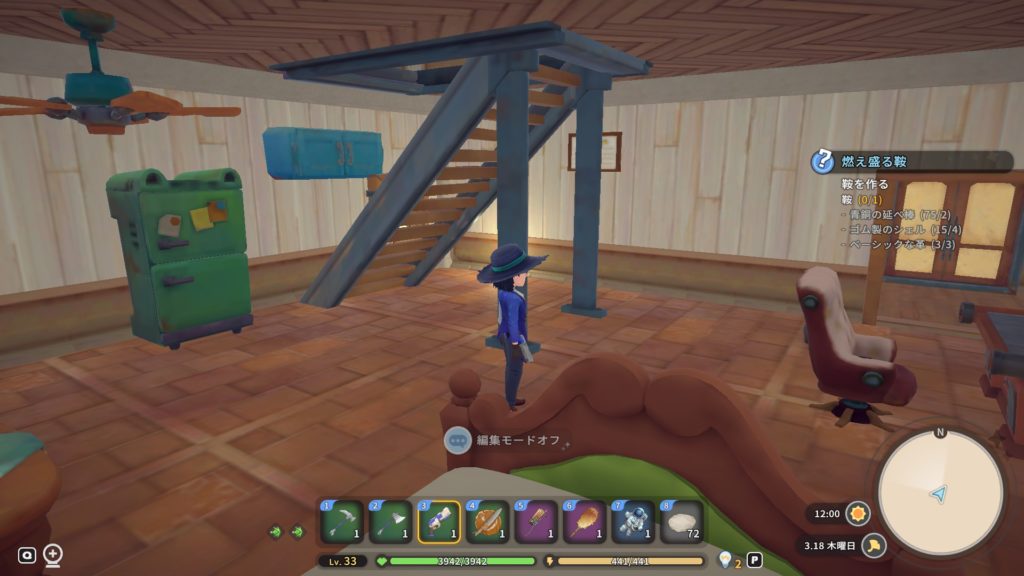 本当は望遠鏡を設置したかったのだけど、置くことが出来ないアイテムだった。残念。