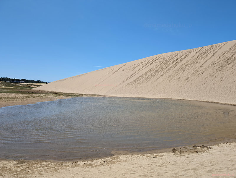 近づいてよく見てみると、丘の前に水たまりがある。